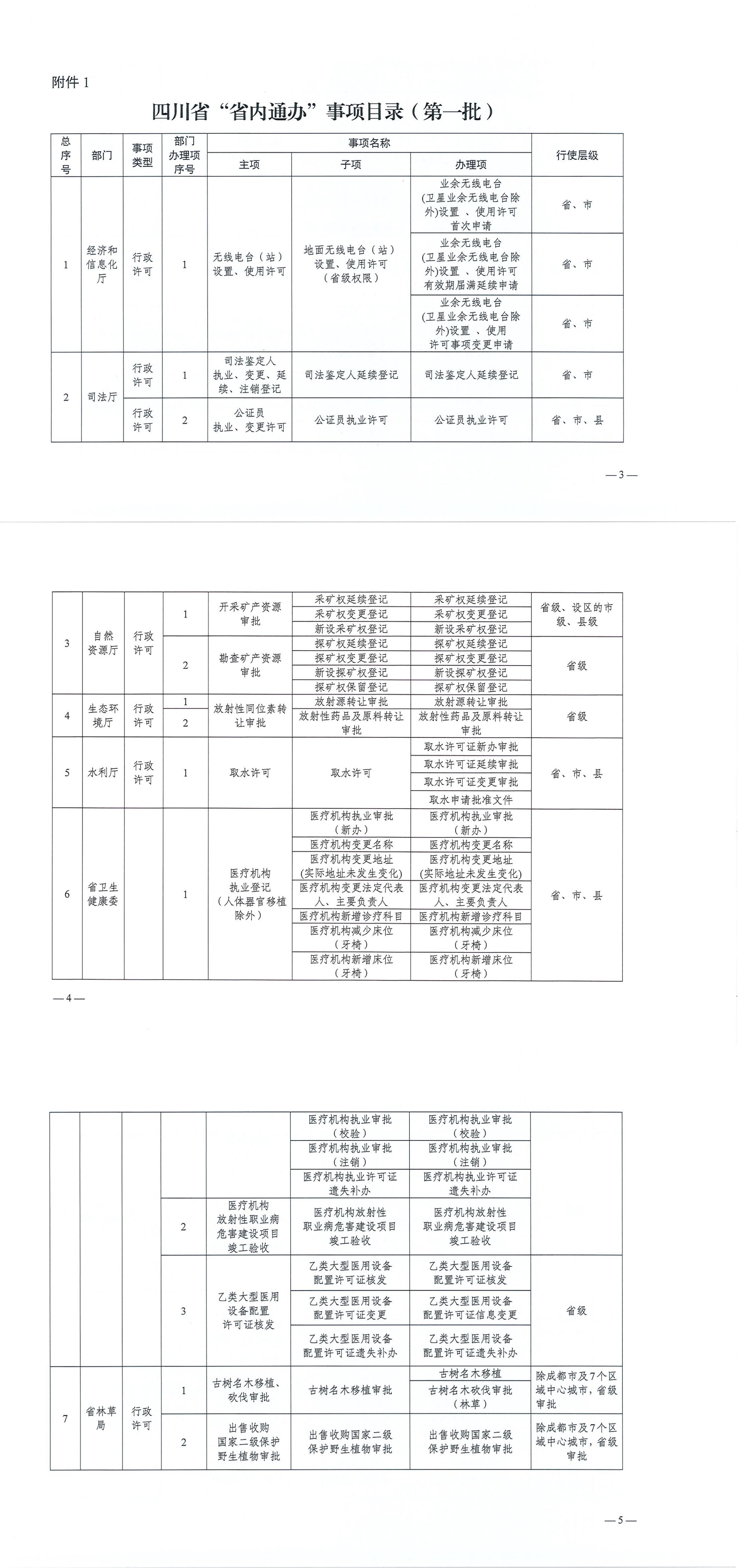 四川省“省内通办”事项目录(第一批)