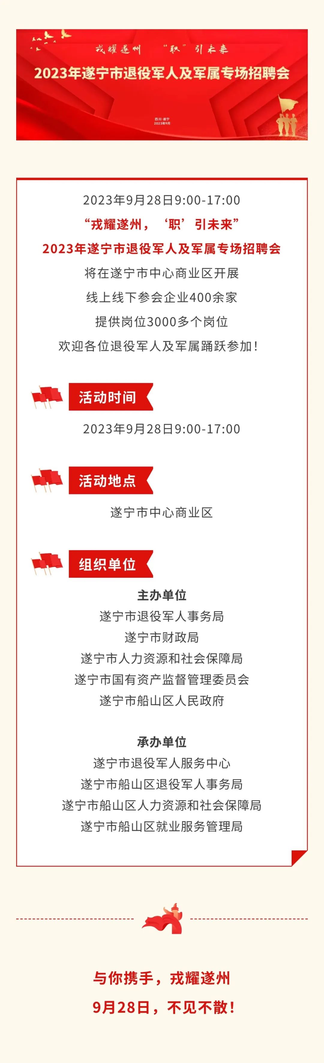 9月28日,2023年遂宁市退役军人及军属专场招聘会即将开启!