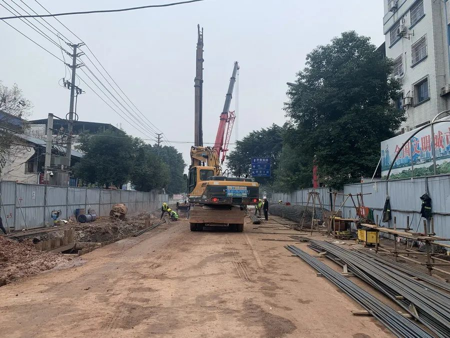 近日,位于船山区开善路雨水通道改造项目现场一派繁忙,挖掘机铁臂高举,旋转铲斗开挖泥土,约30名工人正奋战一线,确保项目建设稳步推进。记者了解到,目前项目已完成雨水管网埋设约200米、检查井安装6座、集水池护壁桩19根,整体进度达45%。
