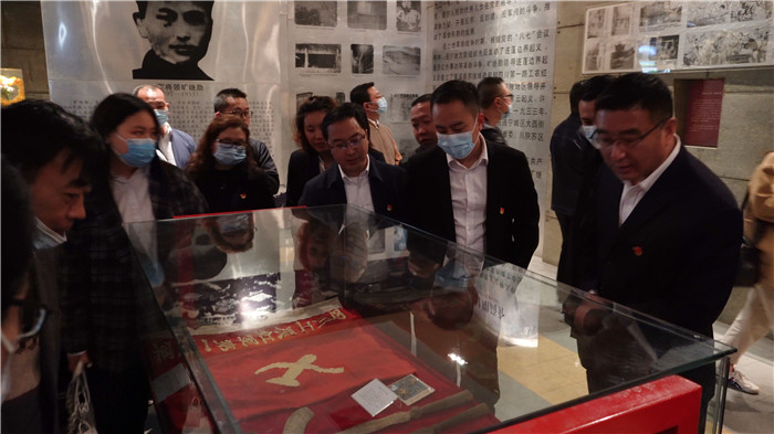 “旷继勋曾被评为‘100位为新中国成立作出突出贡献的英雄模范人物’,他建立了四川第一个县级苏维埃——蓬溪县苏维埃。”随后,党员们走进烈士纪念馆,在讲解员的解说下,通过一件件实物、一张张照片、一份份荣誉,追思革命烈士英勇奋斗的历程,让每一位党员深感幸福生活来之不易。