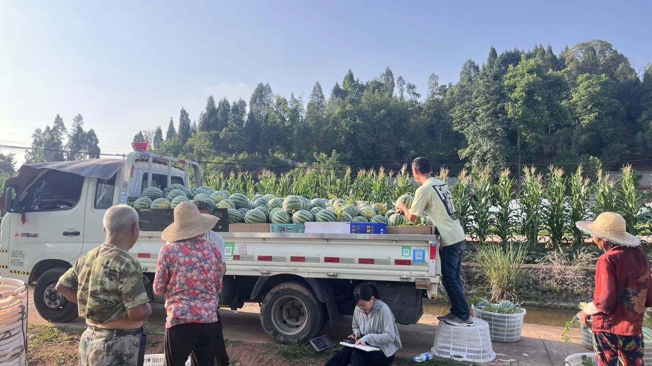 据遂宁市棕陈种植家庭农场有限公司负责人陈建介绍,公司共流转土地150亩,科学规划种植结构,其中100亩用于种植西瓜,另外50亩则采用玉米与大豆复合种植模式。为实现错峰上市、稳定供应,西瓜种植特意分三批进行,自5月起已持续供应市场。当前采摘的第二批西瓜,即将发往重庆、南充等主要销售市场。