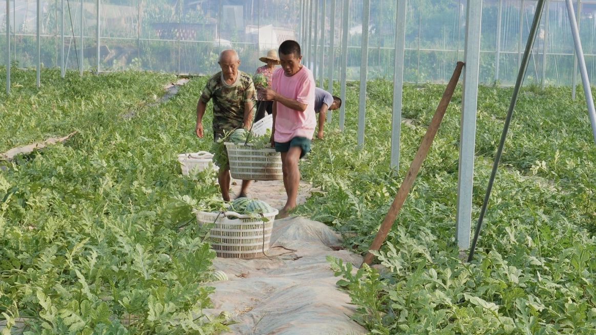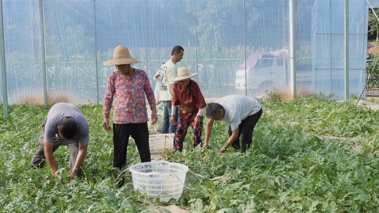 眼下,正是西瓜采摘的季节,龙凤镇棕树村果蔬种植基地迎来西瓜丰收。6月11日,遂宁市棕陈种植家庭农场有限公司的连体大棚内,工人们穿梭在瓜垄之间,饱满圆润的西瓜在藤叶间若隐若现,采摘、搬运、装车,一派繁忙景象。