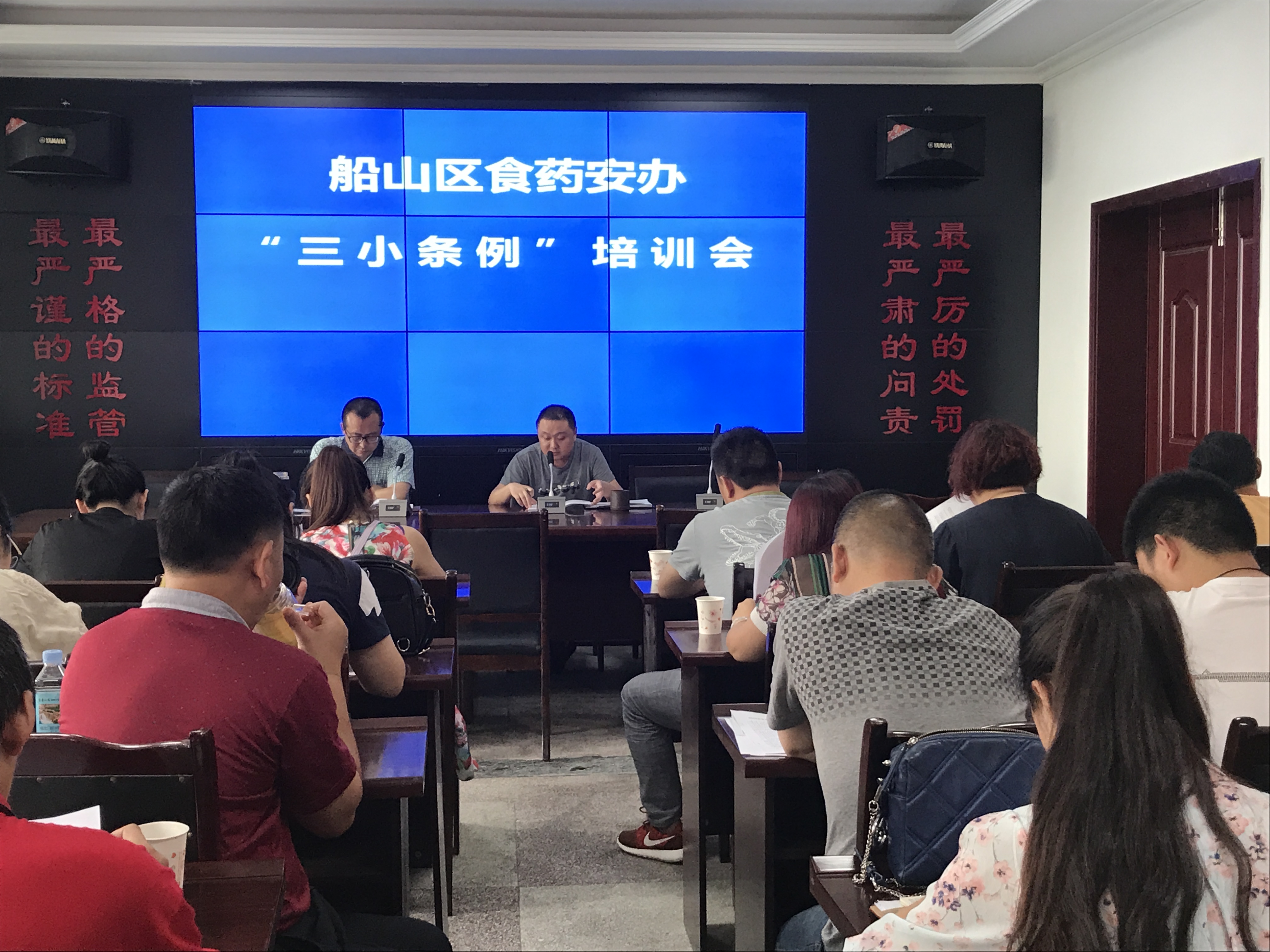 6月20日下午,船山区食药安办组织各乡镇、街道食药安办主任、负责办理摊贩登记卡的工作人员、各基层食药监管所负责人共计40余人参加了召开“三小条例”专题培训会。