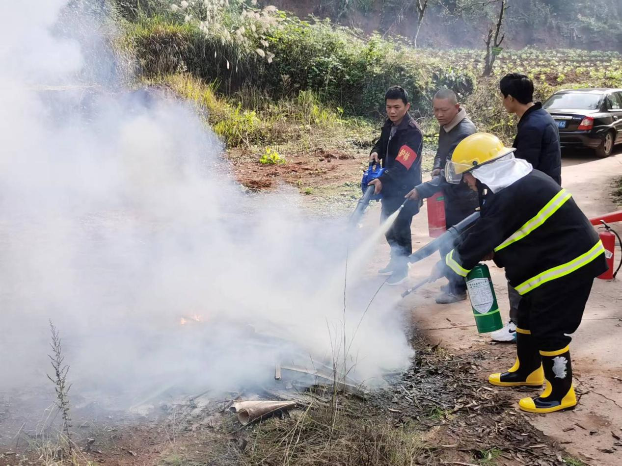 培训采用理论与实际相结合的方式进行,内容涉及火灾应急救援的组织与实施(火灾报警、疏散逃生、扑救技巧)、火灾初期防控措施(现场隔离、设立警戒带)、森林火灾扑救技术与装备的操作、森林火灾的危害与影响、森林火灾的成因与发展规律等,期间还组织文笔山村半专业扑火队伍和部分村民进行了森林火灾扑救应急演练,进一步提升了广大人民群众对森林火灾防范的意识和积极参与性。