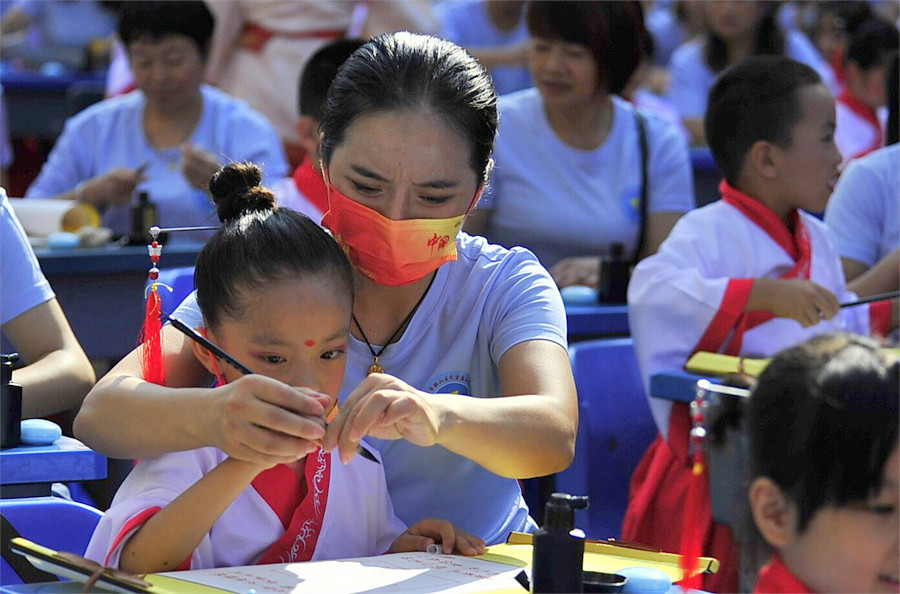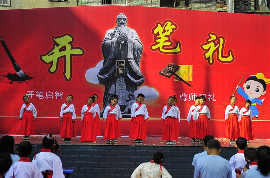 礼始、端正衣冠、朱砂启智、击鼓鸣志、送祝福……孩子们在传统的“开笔礼”中,迈开学习的第一步。活动现场,一颗小小的红砂痣,一张张灿烂的笑脸,传递着老师对孩子们的殷切希望和美好祝福。