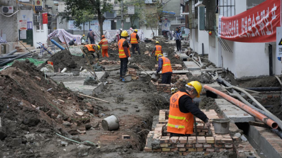 由遂宁兴船实业有限公司承建的老旧小区改造(三期)项目是区属重点民生工程,受到船山区委、区政府的高度重视。为了高质量高效率完成建设任务,项目部克服地处老城区的繁华地段、交通管制严格、上下班高峰期拥堵等诸多不利因素影响,增加施工人员240人,紧抓安全文明施工规范要求,高标准、严要求,努力打造人民满意的高质量民生工程,为提升遂宁市船山区老旧小区改造水平贡献国企力量。