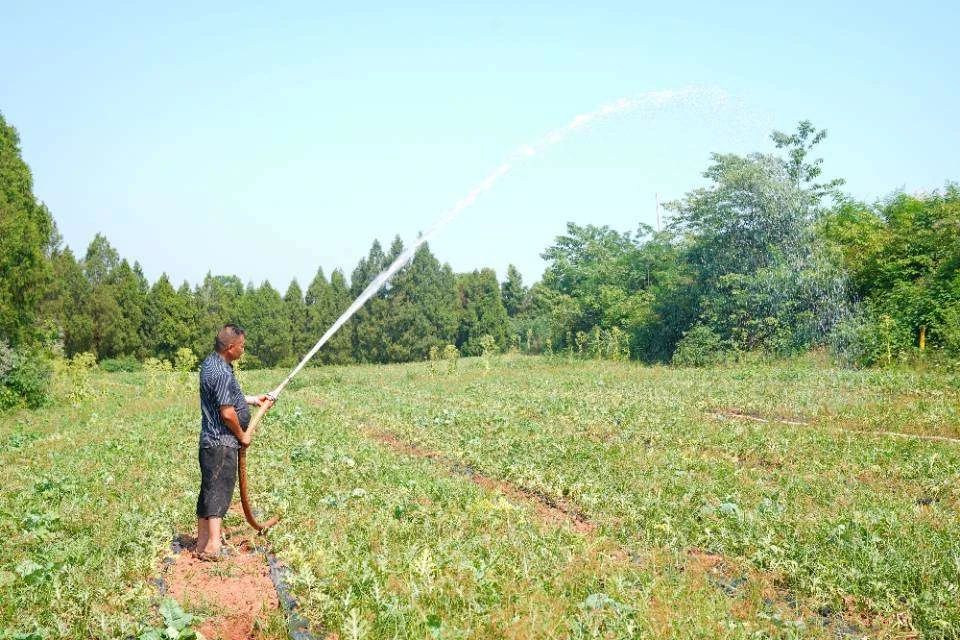 方案定了“跨村引水”:从邻村芋禾村提灌站引水,铺设500多米管网到吴登华的地头,再协调一座储水池蓄水。