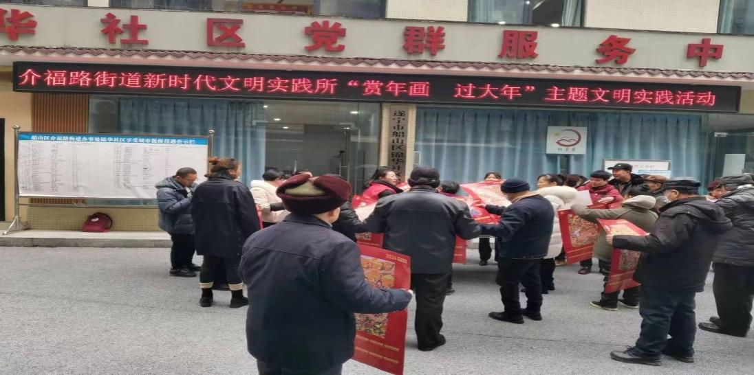 为迎接即将到来的农历新年,增添中国优秀传统文化节日气氛,丰富人民群众精神文化需求,增强街道凝聚力、向心力和文化生命力,激励广大群众振奋精气神,2024年2月2日,介福路街道新时代文明实践所在锦华社区开展“赏年画 过大年”主题文明实践活动。