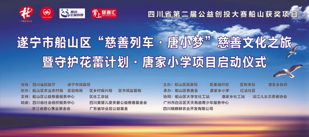项目由四川省民政厅、遂宁市民政局指导,船山区民政局、区委组织部、区教体局、唐家乡政府合力推动 在四川省第二届公益创投大赛获评优秀项目 鸣谢:四川省社会组织服务中心 四川美望儿童关爱公益慈善基金会 浙江省爱心事业基金会 广州市白云区天天有益青少年服务中心 广东省毕业后公益基金