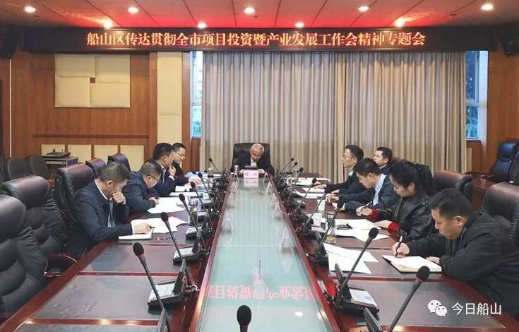 10月9日下午,区委书记曹斌组织研究船山区贯彻落实全市项目投资暨产业发展工作会精神具体措施。区委副书记、区长韩麟,区委副书记白争春,物流港党工委书记、管委会主任牛斌,区委常委、常务副区长陆京会,副区长李江源参加研究。