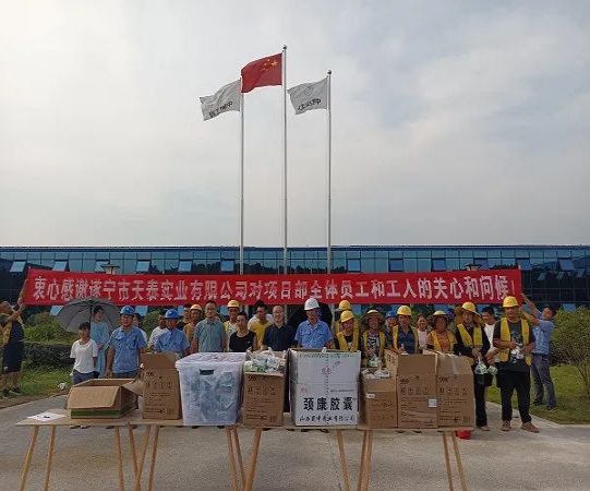 当天,天泰实业公司党支部书记、董事长蒲千春,监事会主席雷鹏程一行先后前往桂花棚改、川职院龙凤产教园区等项目现场,为高温下坚守岗位的农民工、企业职工送去500余份防暑降温物品。