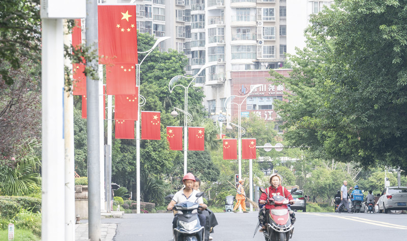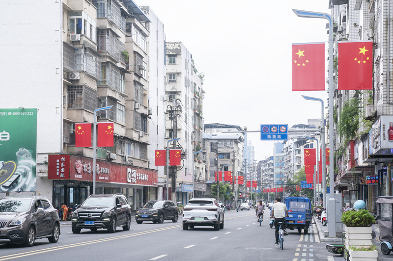 国旗飘扬,初心如炬。今年的中秋国庆,让“我和我的祖国”“与国旗一起成长”等真情告白触发更多人的追忆、感怀和思考。抹抹热烈的“中国红”,无不传递出股股奋进的力量,表达着船山儿女对祖国母亲74岁华诞的深深祝福。而国旗的火红色彩,也映射出船山大地各界群众生活的精彩纷呈,彰显出船山经济社会发展的日新月异,汇聚起全面建设社会主义现代化国家的磅礴伟力!