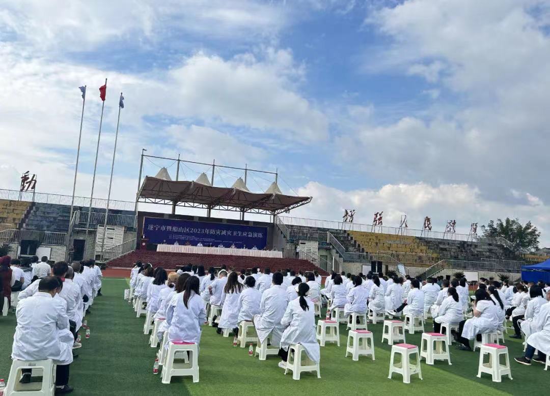 10月13日是第34个“国际减灾日”,为提升卫生健康队伍应对处置各类自然灾害能力,检验防灾减灾联动机制,由遂宁市卫生健康委、船山区人民政府共同主办的“遂宁市暨船山区2023年防灾减灾卫生应急演练”在遂宁市第六中学校举办。此次演练共集结了市区17支卫生应急队伍,100余名参演人员,20余台各类卫生应急工作及保障车辆,市直和船山区各医疗卫生健康单位、船山区教师队代表、民兵队伍代表和村医生代表队伍约200余人观摩了此次演练。
