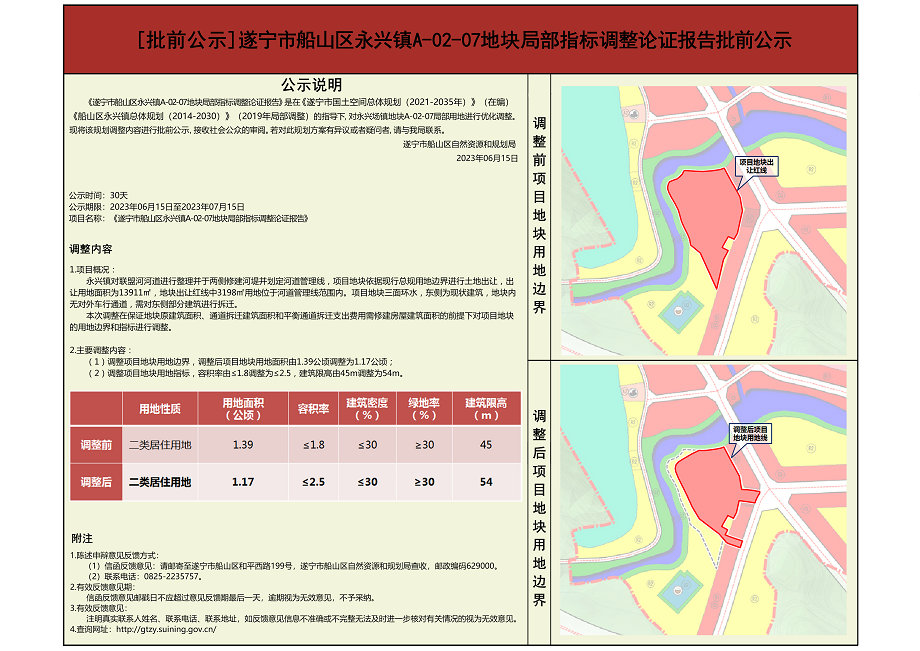 遂宁市船山区永兴镇A-02-07地块局部指标调整论证报告批前公示