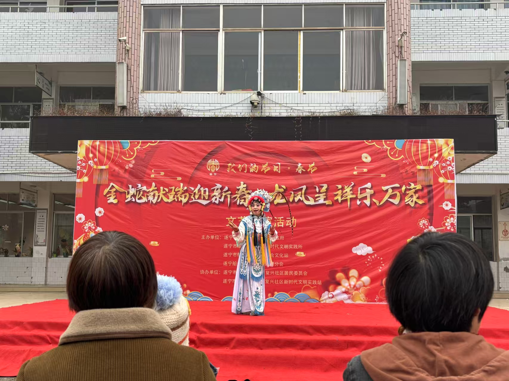 1月23日,在春节即将来临之际,龙凤镇在复兴社区举办“金蛇献瑞迎新春,龙凤呈祥乐万家”文艺汇演。