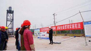 污泥处置厂项目活动现场,项目负责人结合项目建设发展实际和工人务工特点,用通俗易懂的语言,为工友们普及了《中华人民共和国宪法》《中华人民共和国民法典》《中华人民共和国劳动合同法》等法律知识,并把法律法规解读与案例分析有机结合,通过以案释法、以案说法的方式,将原本抽象难懂的法律条文具体化、生动化、形象化,让工人们深切感受到宪法其实就在他们的身边。