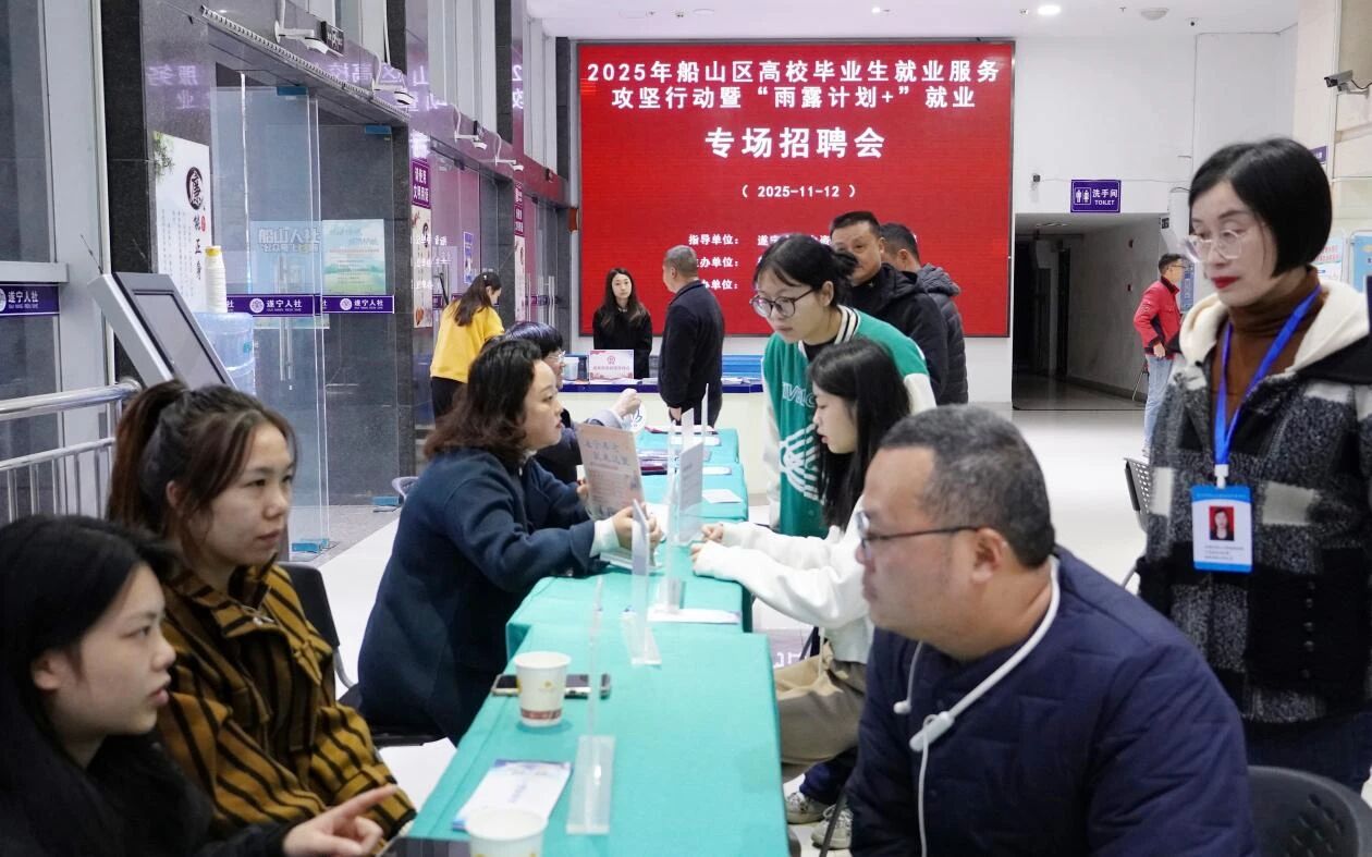 11月12日,由遂宁市人力资源和社会保障局指导,船山区人力资源和社会保障局、船山区农业农村局主办,船山区就业服务管理局、船山区人力资源市场承办的2025年船山区高校毕业生就业服务攻坚行动暨“雨露计划+”就业专场招聘会举行。