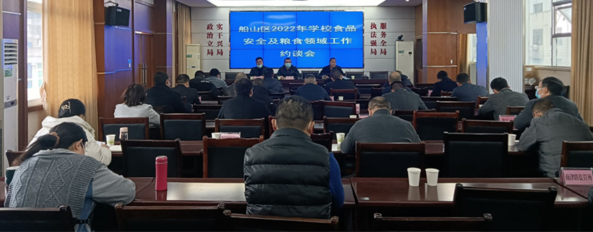 3月1日上午,船山区市场监管局召开2022年校园食品安全及粮食领域工作约谈会。会议通报了近期食品安全突发事件,并对学校食品抽检、粮食领域专项检查、餐饮环节食品安全提出工作要求。全区各乡镇、街道、区教体局、市直属学校相关负责人参加会议。