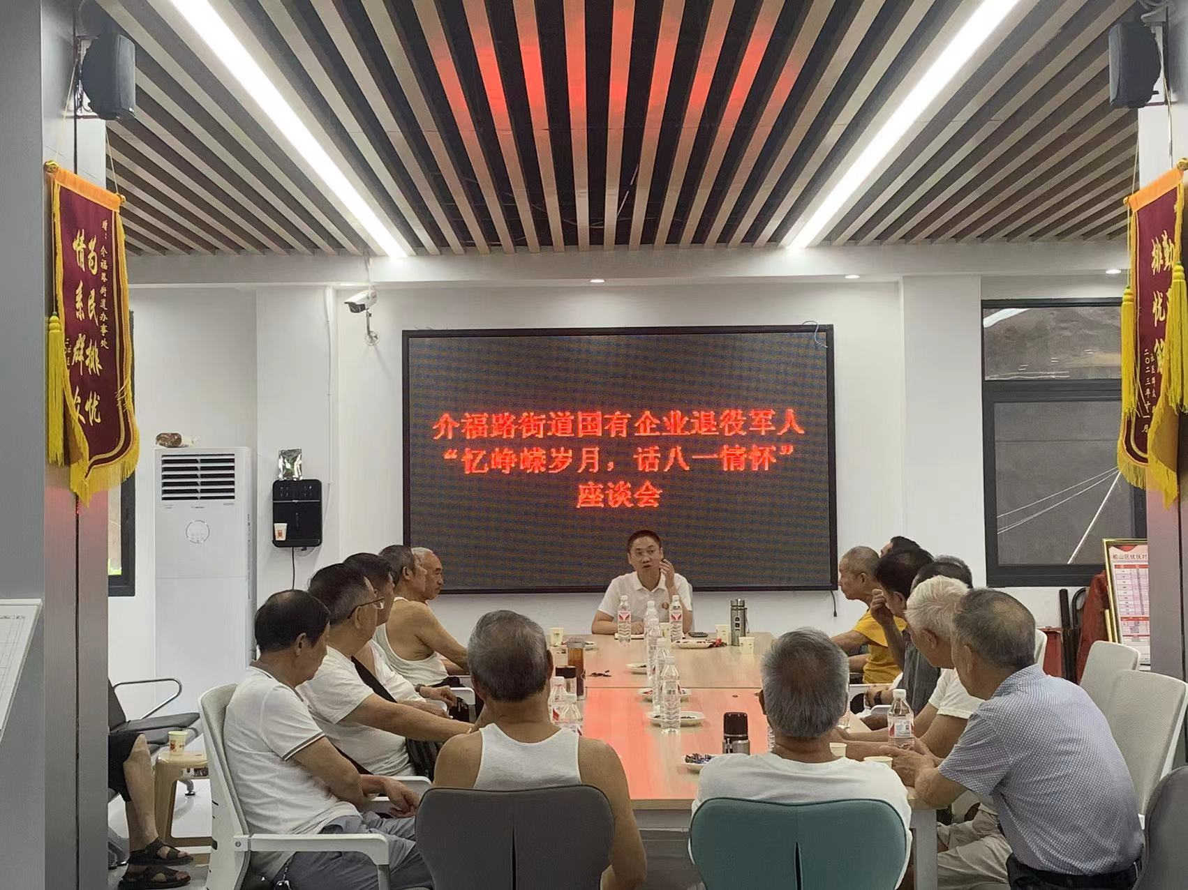 为庆祝中国人民解放军建军97周年,进一步增强退役军人的荣誉感、归属感和幸福感,2024年7月30日,介福路街道邀请了辖区国有企业退役军人,开展了“忆峥嵘岁月 话八一情怀”为主题的庆“八一”座谈会。