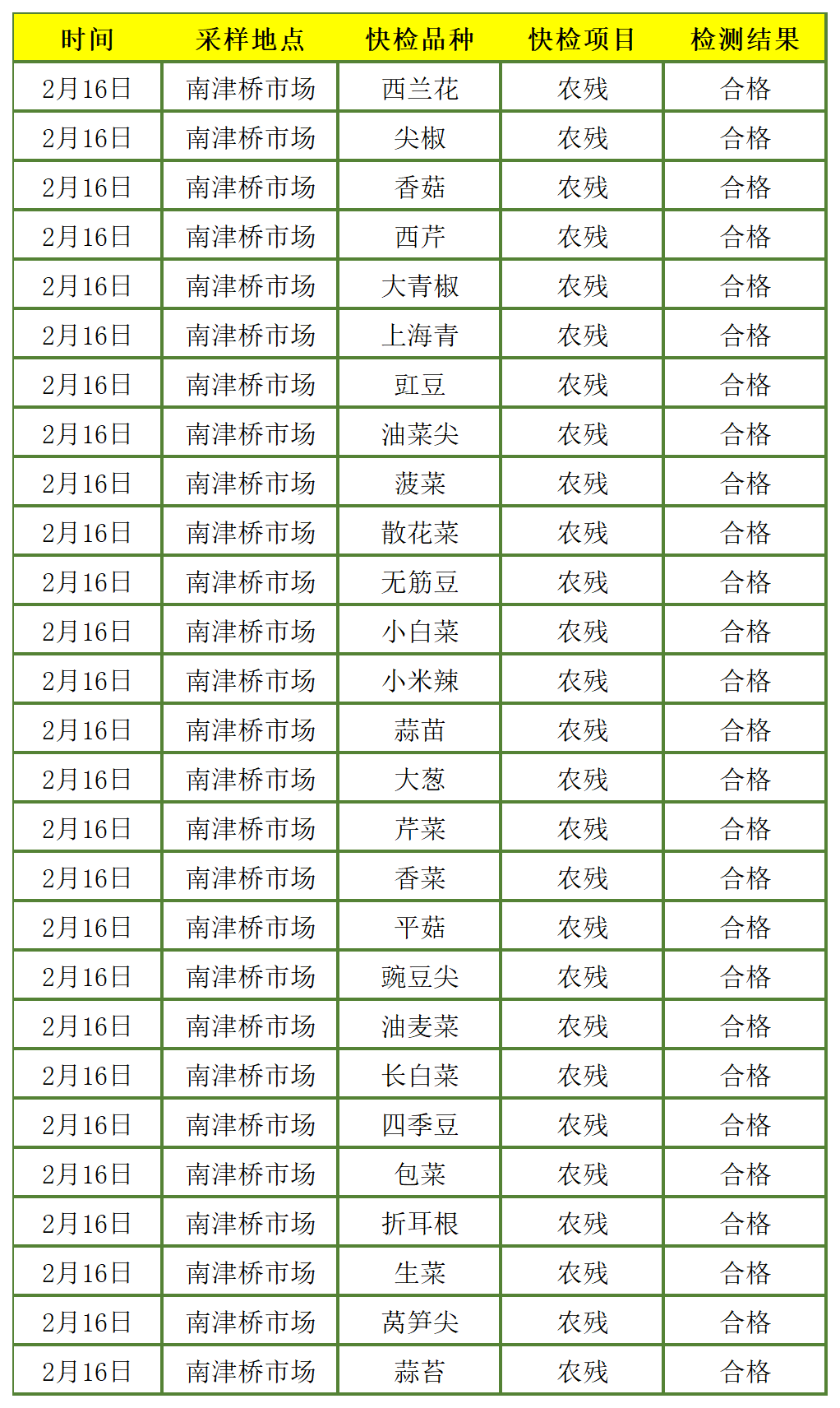 【春雷行动2023】船山区食用农产品快检结果公示(2023年2月16日)