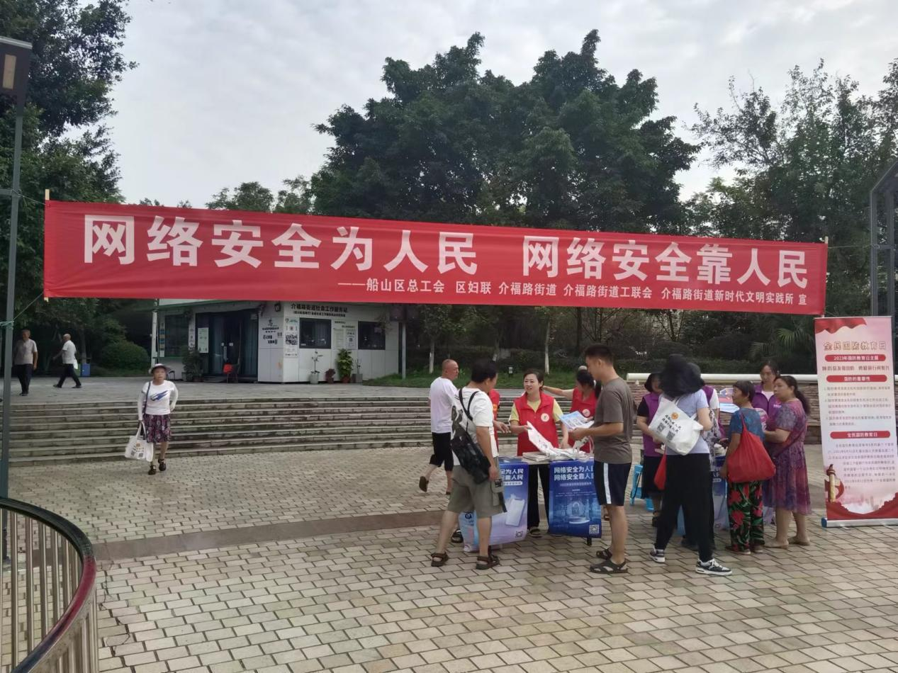 为了向群众普及网络安全知识,大力提升群众网络安全意识和防护能力,推进网络安全知识进基层、进社区、进头脑,2023年9月17日上午,介福路街道联合区总工会、区妇联、介福路街道工联会、介福路街道新时代文明实践所,在北河街社区犀牛堤广场开展以“网络安全为人民,网络安全靠人民”为主题的网络安全宣传活动。