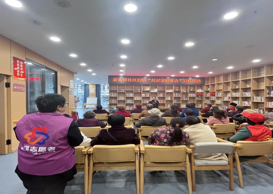 为进一步增强广大妇女群众的反家暴维权意识,保护妇女儿童在家庭中的合法权益,在“11.25国际消除家庭暴力日”来临之际,介福路街道嘉禾桥社区妇联于11月25日上午在嘉禾桥社区三楼活动室开展反对家庭暴力宣讲会。