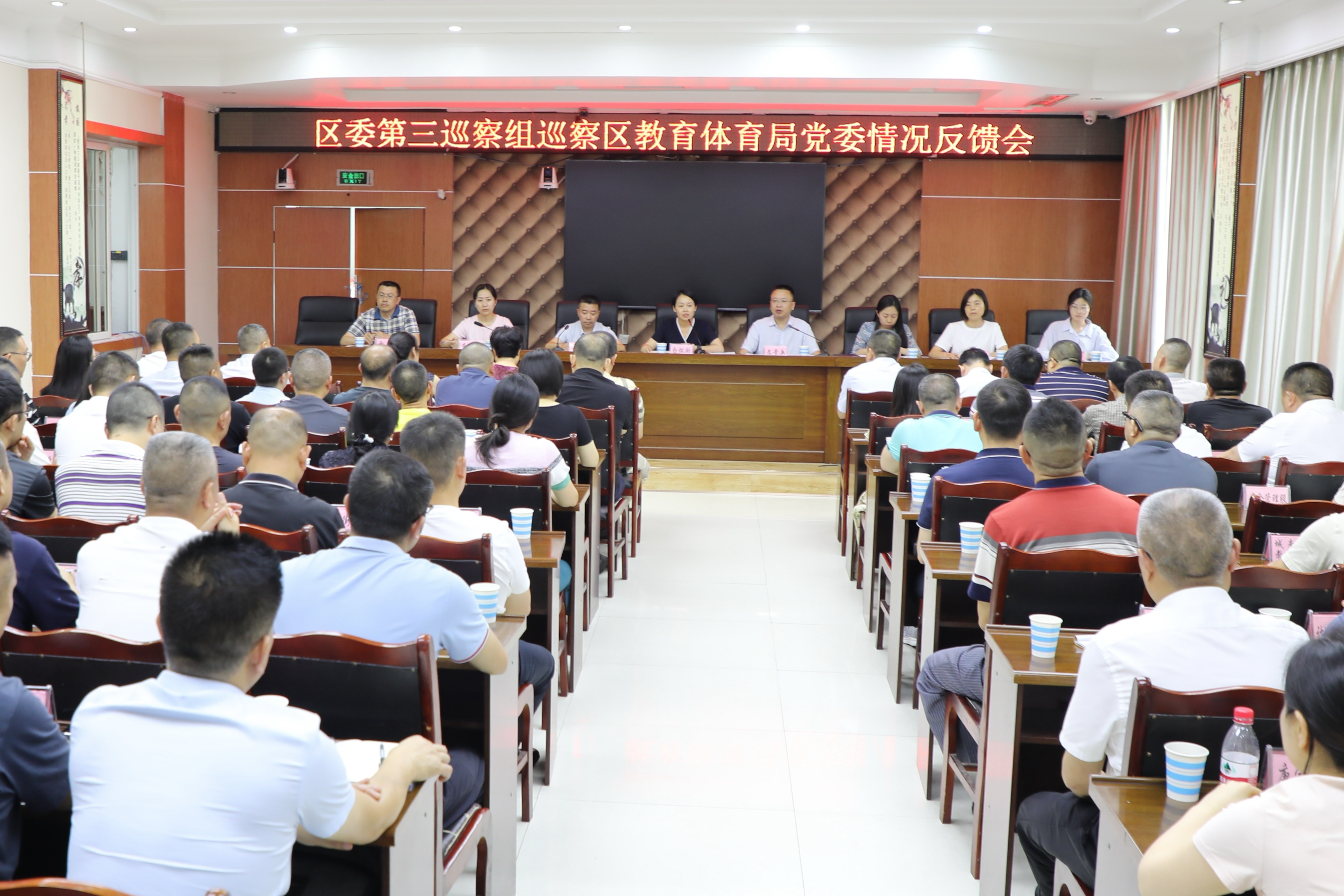 根据区委巡察工作统一安排部署,7月2日,区委第三巡察组巡察区教育体育局党委情况反馈会议召开。区委常委、宣传部部长、区总工会主席白怀湘出席会议并讲话。区纪委常委、监委委员、区委巡察办主任、区委巡察工作领导小组成员文贵兵,区委第三巡察组组长李婧秋、副组长刘小玉,区纪委监委、区委组织部等相关同志到会反馈巡察意见,区教育体育局党委书记、局长米强主持会议并作表态发言。