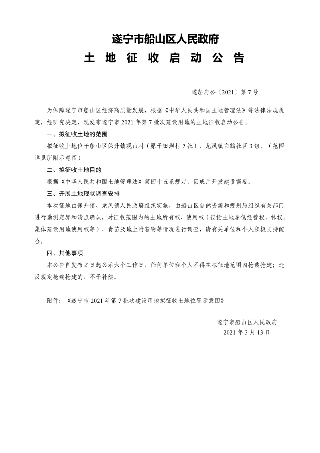 遂宁市船山区人民政府土地征收启动公告(遂船府公〔2021〕第7号)