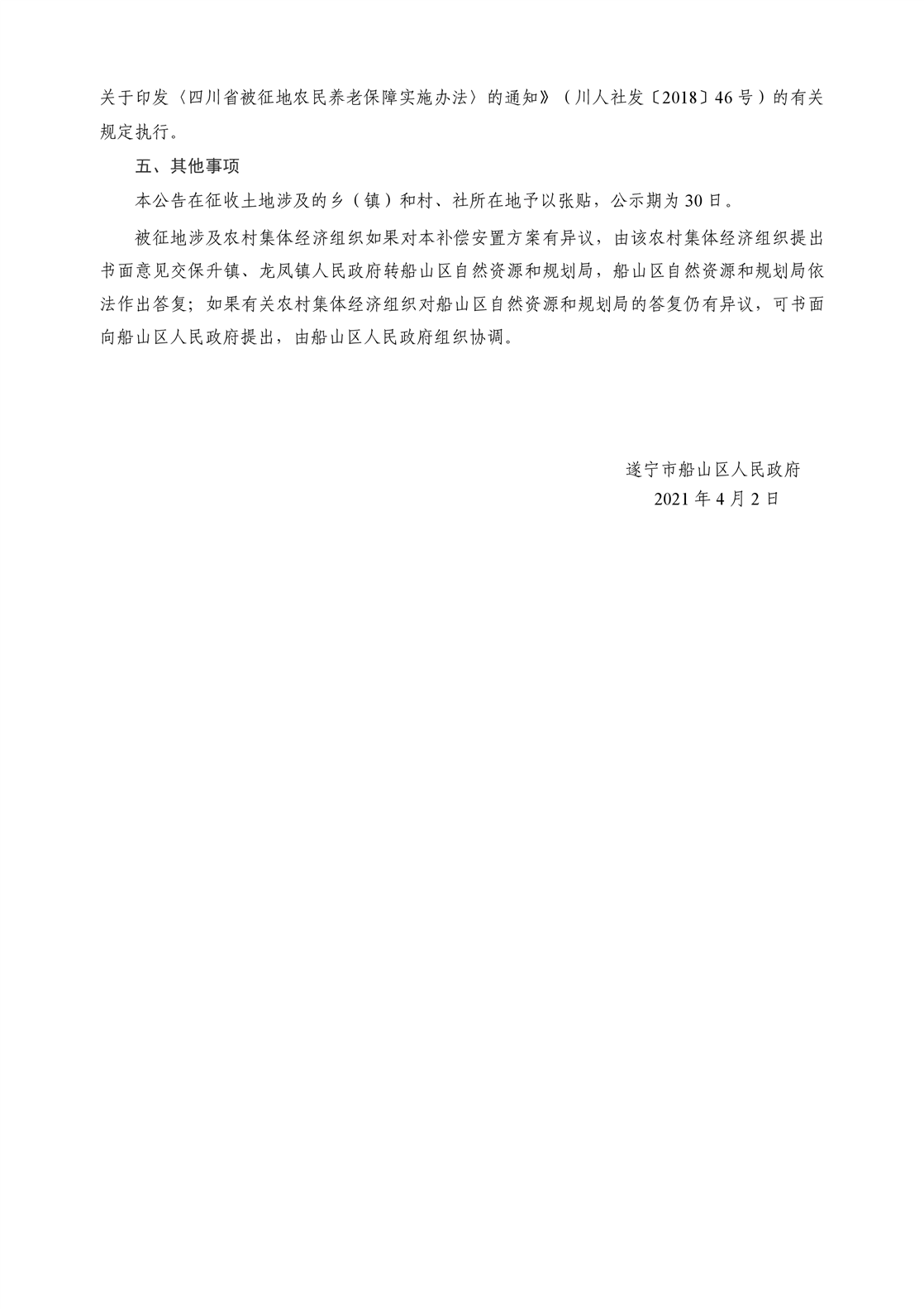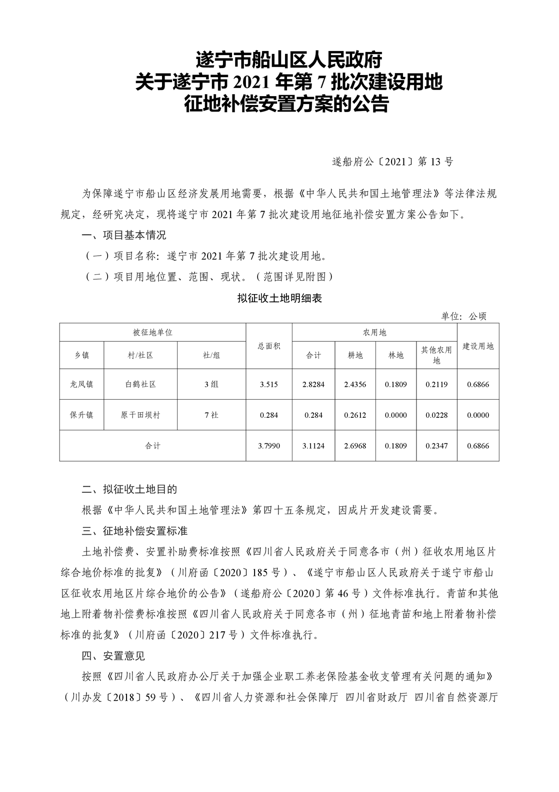 遂宁市船山区人民政府关于遂宁市 2021 年第 7 批次建设用地 征地补偿安置方案的公告(遂船府公〔2021〕第 13 号)