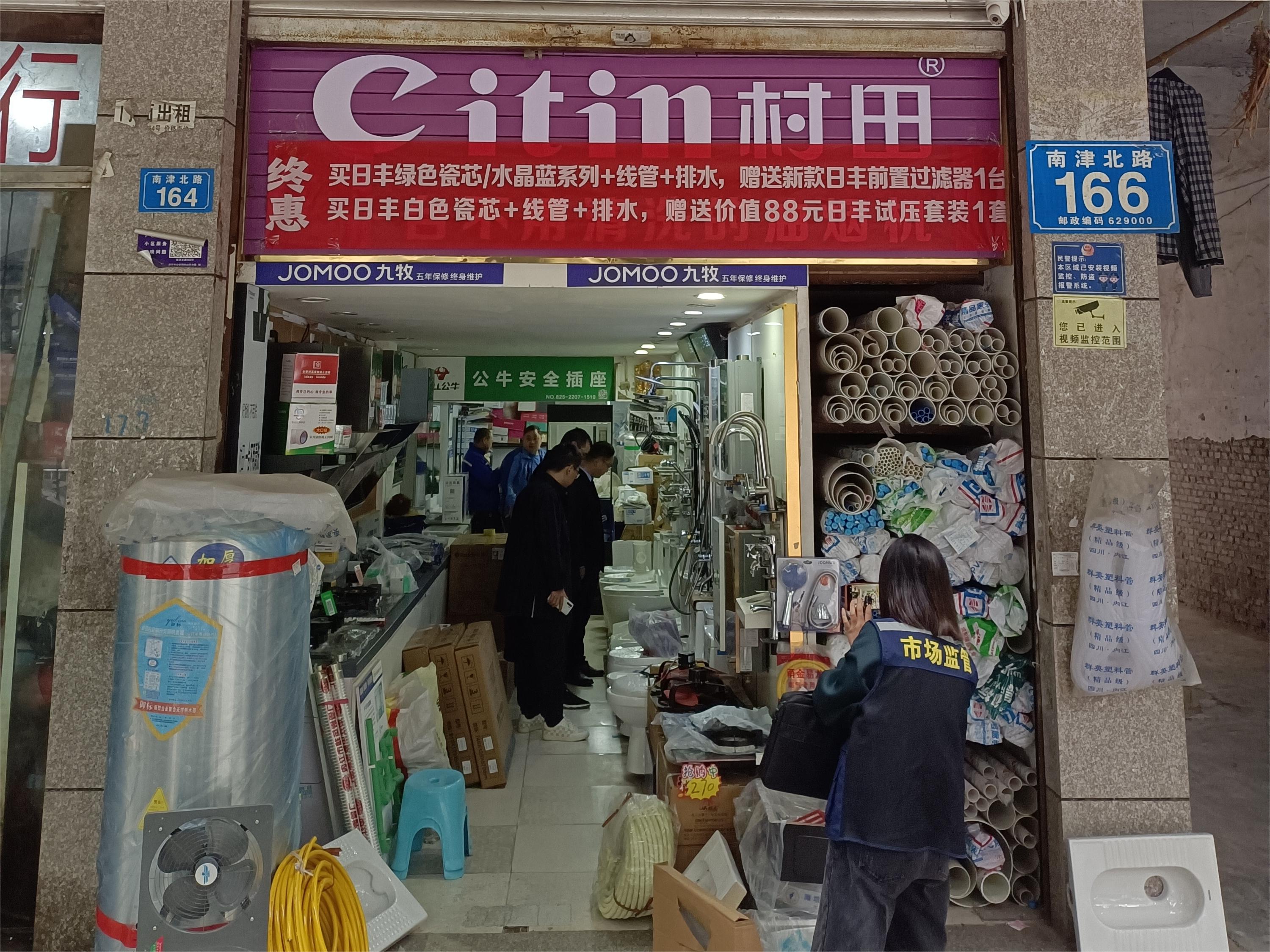 检查组主要对销售的蹲便器、管具、水箱等厕具进行了检查,重点查看以上产品是否有产品进货单,是否有检验检测报告,是否有产品合格证明,经营户是否存在销售国家明令淘汰的产品等情况。对现场检查发现的不规范行为,已由市场监管局通知整改。
