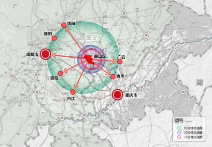 图3-1 船山区至周边20、30及90分钟(公路)通达圈