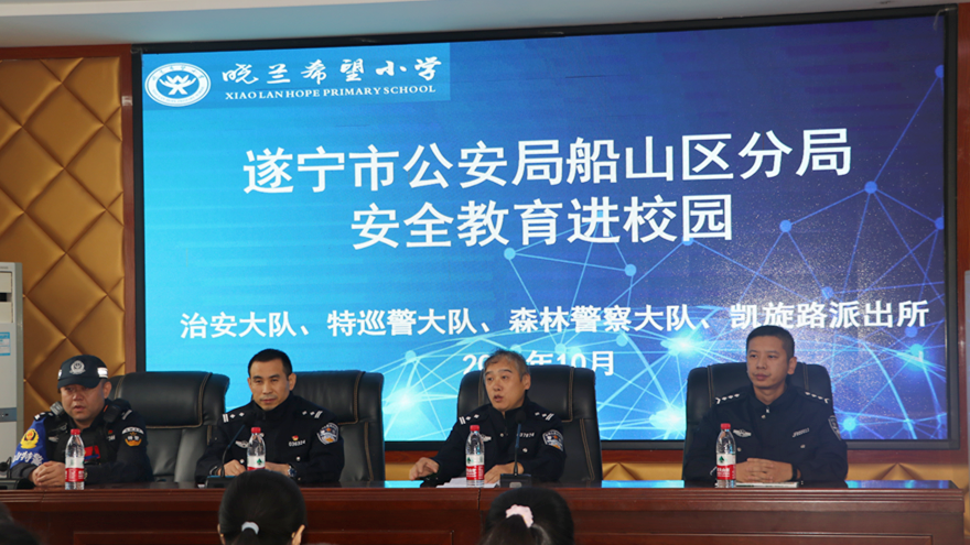 近日,晓兰希望小学邀请市公安局船山区分局治安大队、特巡警大队、森林警察大队、凯旋路派出所的民警走进校园,对师生们进行安全宣传教育。民警从容易发生意外伤害的隐患类型、日常真实案例分析以及如何加强自我防范等方面展开宣教,有效增强广大师生的安全防范意识,确保师生安全,共筑平安和谐校园。