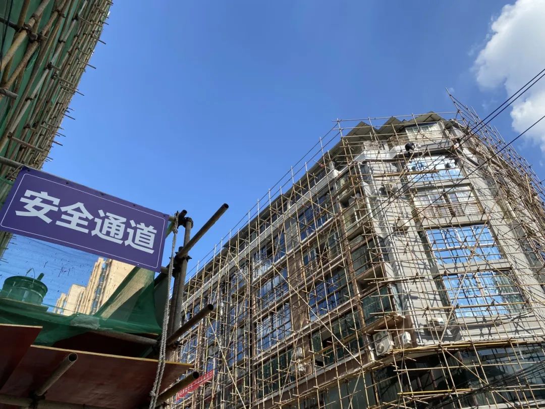 同样,荣兴街道路及排水管网升级改造项目施工现场也是一派火热景象。只见道路两旁的店铺楼房搭满脚手架,工人们正穿梭楼宇间,进行油漆喷涂、窗户更换、店招改造等立面改造作业。“目前,主路准备完成油面铺设,人行道的基层无砂大孔混凝土已经铺设完毕。”四川兴创优筑建设有限公司现场负责人叶飞说,4栋楼完成了真石漆喷涂,外立面窗户更换了50%左右,工人正在逐步拆除楼房外立面的脚手架,进行收尾作业。
