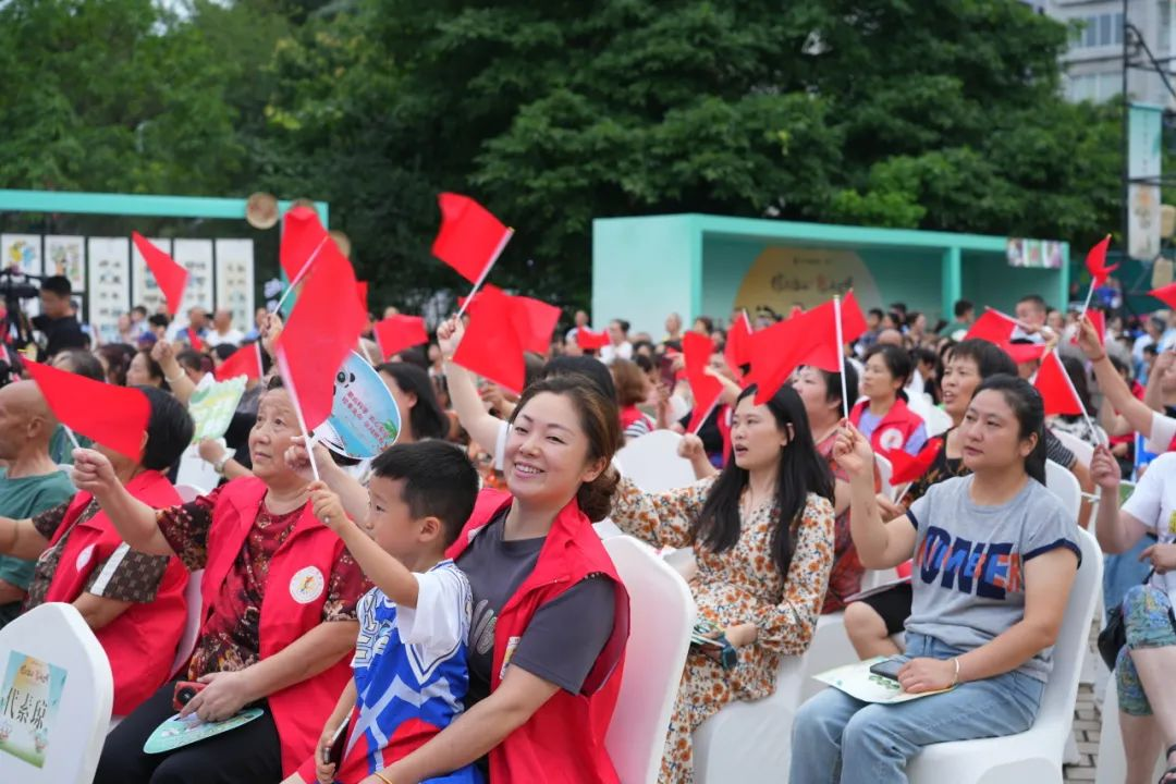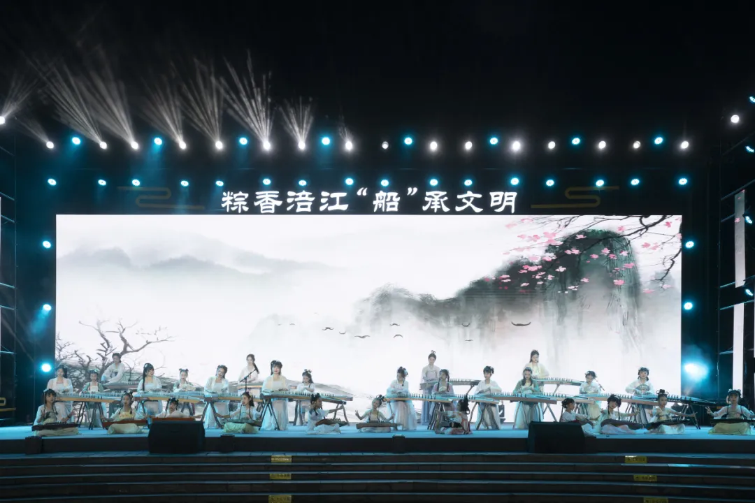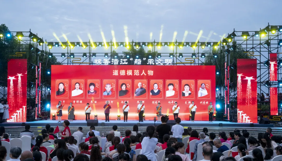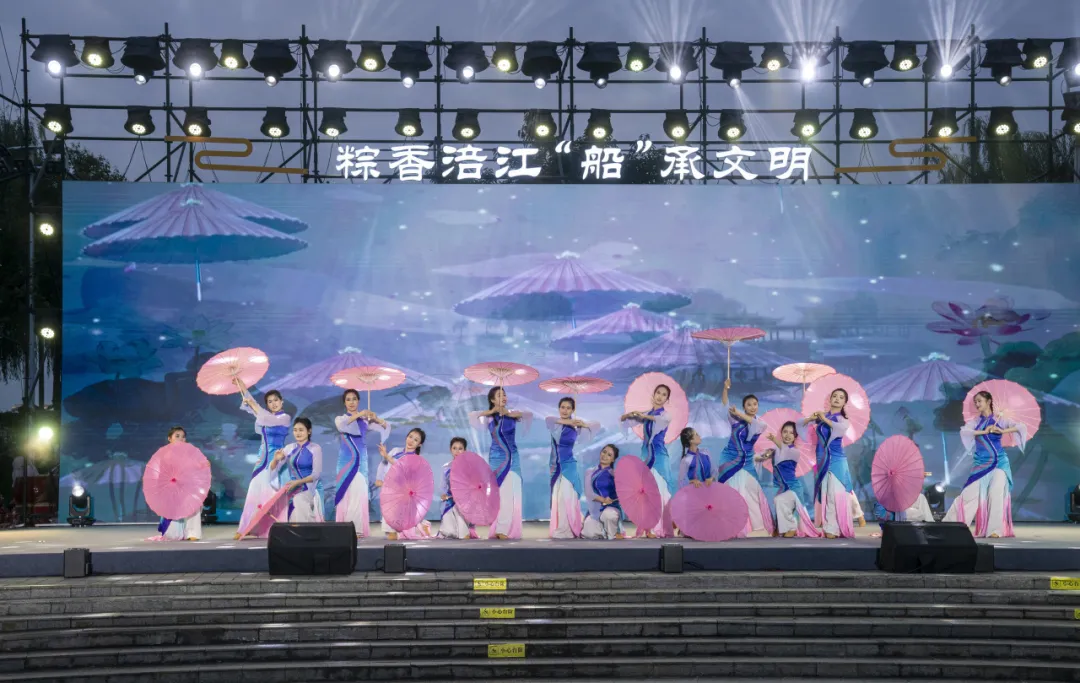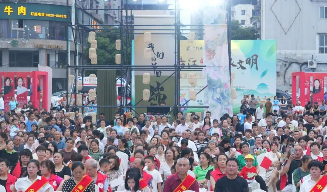 当晚,演出分为“颂文明、迎端午”“树新风、共安康”“粽情谊、庆佳节”三个篇章,舞蹈《船山烟雨》《荷叶甜甜》、少儿川剧《扈家庄》、独唱《多情的土地》、古筝《采菊东篱下》《咏春》、朗诵《寄情端午》、川剧表演《梨园国粹》等节目精彩纷呈,赢得了现场观众的阵阵喝彩。 活动现场,来自遂潼两地的道德模范、身边好人、文明家庭、劳模等先进典型代表与现场观众见面,全国最美家庭代表杨于作了交流分享。 此次活动由中共遂宁市委宣传部、遂宁市精神文明建设办公室、中共重庆市潼南区委宣传部、重庆市潼南区精神文明建设委员会办公室主办,遂宁市船山区新时代文明实践中心、中共遂宁市船山区委宣传部、遂宁市船山区精神文明建设办公室、重庆市潼南区文明实践指导中心承办。活动以“粽香涪江·‘船’承文明”为主题,既是弘扬端午文化、涵养家国情怀,也是以此为载体开展文明实践、深化遂潼情谊。 据悉,近年来,遂潼两地深入实施成渝地区双城经济圈建设战略,持续加强协同合作,先后开展了五育并举教育展示、媒体记者采风、文明实践交流、历史文化探源、文旅协同发展等各项活动,共同书写了遂潼携手相盛举、文旅赋能绕双圈的精彩华章。两地将以“巴蜀同脉、文明同行”为主题,不断加强遂潼两地文旅合作,积极培育时代新风新貌,推动两地新时代文明实践工作双促进双提升,共同奏响新时代西部“双城记”的文明乐章,为成渝地区双城经济圈凝聚强大精神力量。 参加此次活动的还有遂宁、潼南各县(市、区)党委宣传部分管负责同志、市直园区党群工作部分管负责同志、机关企事业单位职工代表、船山区新时代文明实践所(站)相关负责同志、群众代表等。