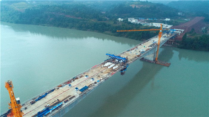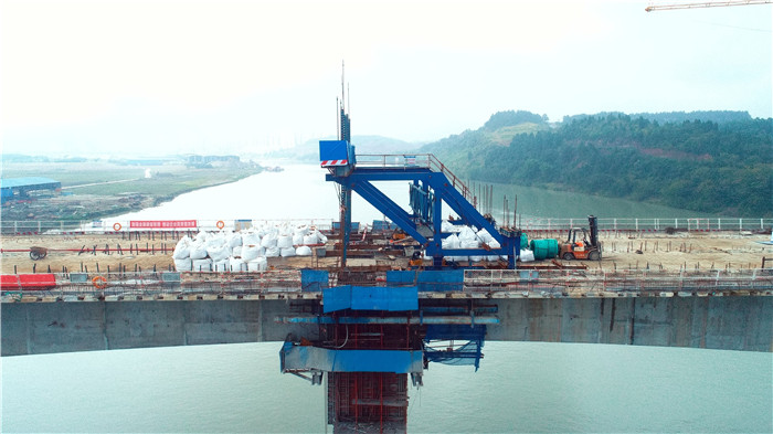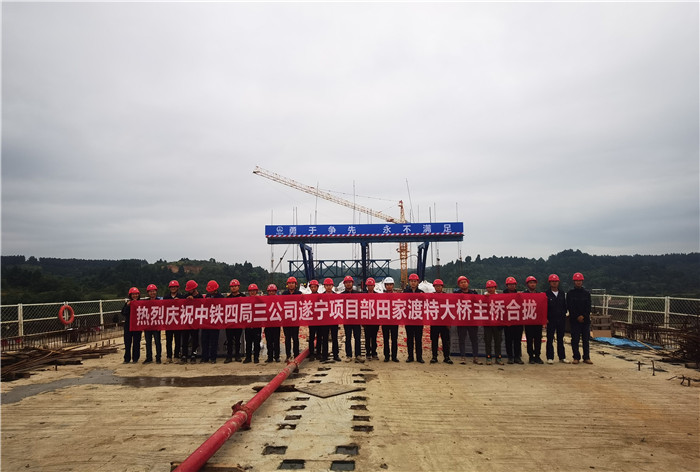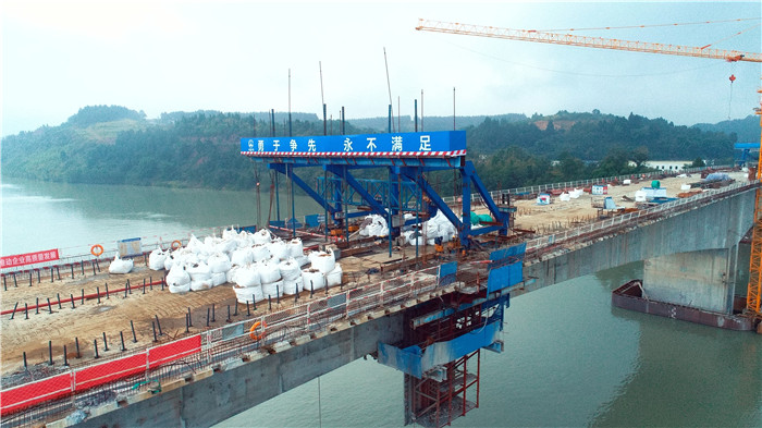 10月9日17时28分,连接船山老池和蓬溪高坪的田家渡大桥主桥中跨合拢段混凝土顺利浇筑,标志着该桥主体工程全部完工,正式进入附属工程施工阶段。