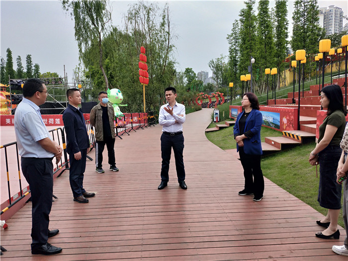 随后,韩麟一行还来到九莲洲生态湿地公园遂宁市第二届莲花灯会现场,对灯会安全、消防、疫情防控工作进行检查。韩麟要求相关部门要认真履行安全生产主体责任,加强安全生产管理,做好体温检测及健康码扫描、人员分流管控、公共空间消毒等方面工作,让游客放心游园、安心赏灯。