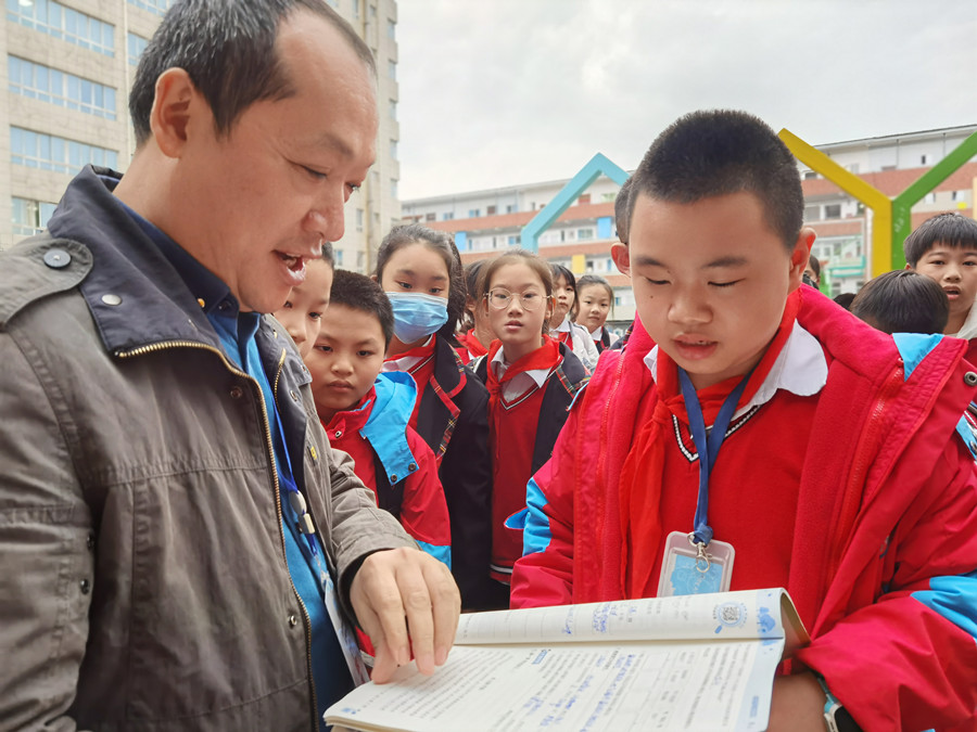 为充分了解老师们对“双减”政策的落实情况,这段时间,每天下午放学时段,新盐市街小学相关负责人便在校门口“蹲守”,随机抽查学生的书包,查看家庭作业布置情况、了解每天作业的类型、完成的时间等,并及时总结通报,取长补短。