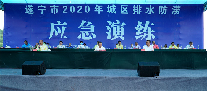 7月1日下午,由遂宁市人民政府主办,市住房和城乡建设局、船山区人民政府承办的遂宁市2020年城区排水防涝应急演练,在遂宁经开区康佳电子产业园云龙路举行。副市长、市城区排水防涝指挥部指挥长罗孝廉出席并讲话。市住房和城乡建设局局长邓云主持演练。副区长、船山区排水防涝指挥部总指挥长任参参加演练。