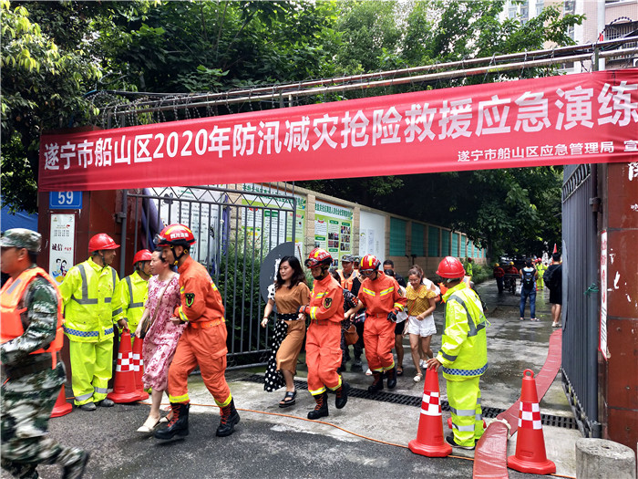 此次还演练了在应急救援力量不足的情况下,船山区民兵应急连和射洪市光华水电应急救援队集结力量和专业设备火速增援,达到了演练预期效果。