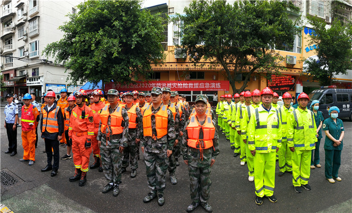日前,船山区2020年城市内涝抢险救援应急演练在介福路街道办盐关东街举行。