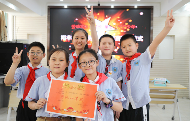 本次劳动技能大赛产生“劳动小标兵”17名,5个中队喜获“劳动技能大赛优胜团队”奖。