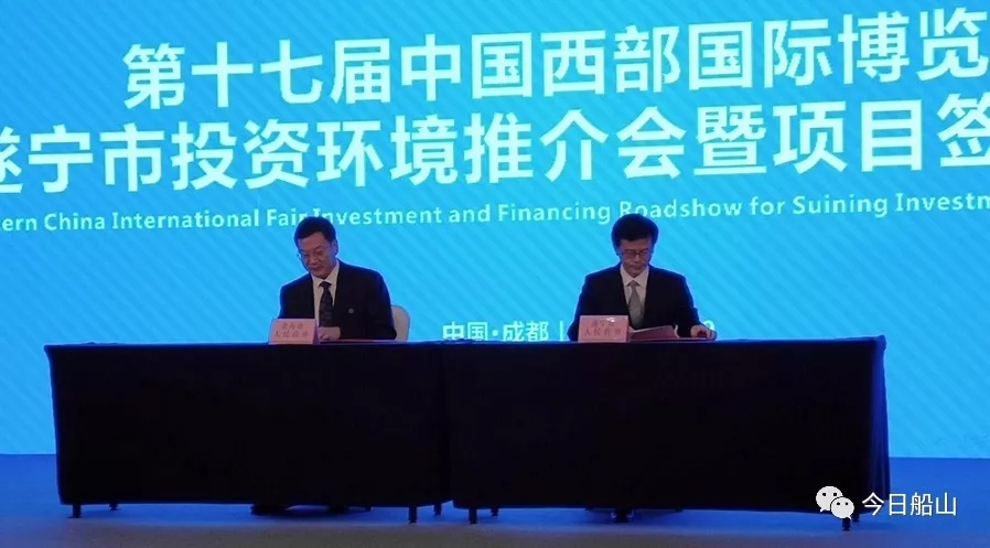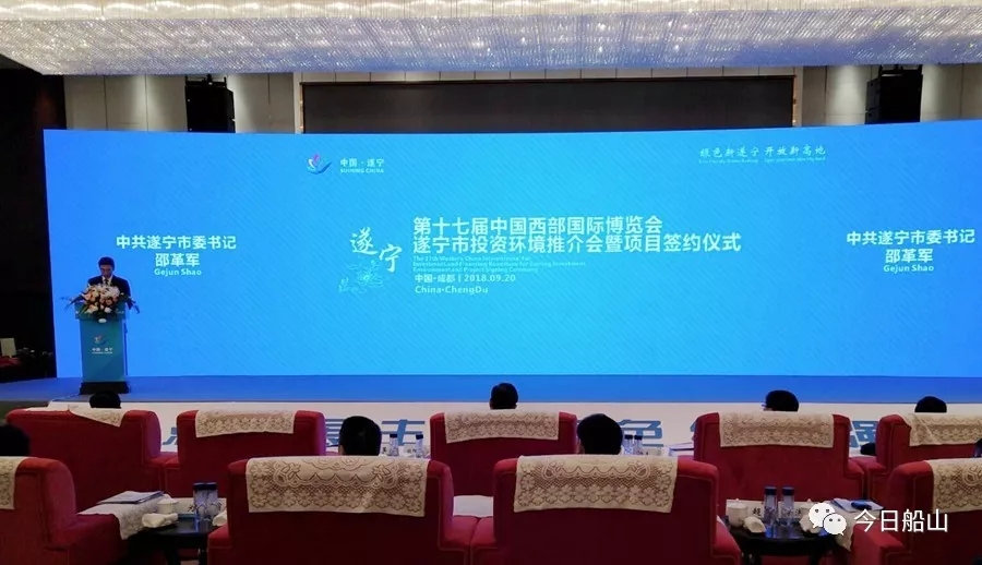 9月20日,在成都举办的第十七届西博会推介会上,遂宁共签约473.1亿元。船山区签约3个项目,投资金额79.8亿元,涵盖电子信息和智能制造两个方面