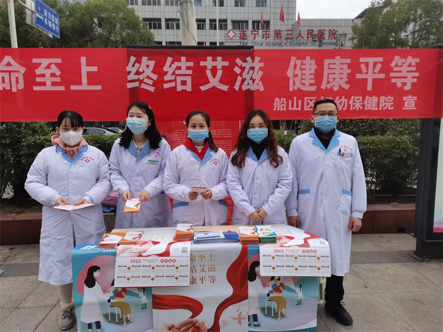 今年12月1日是第34个“世界艾滋病日”,今年的主题是“生命至上、终结艾滋、健康平等”。当天,船山区妇幼保健院组织医务工作者在市城区裕丰园广场开展了艾滋病防治宣教活动。