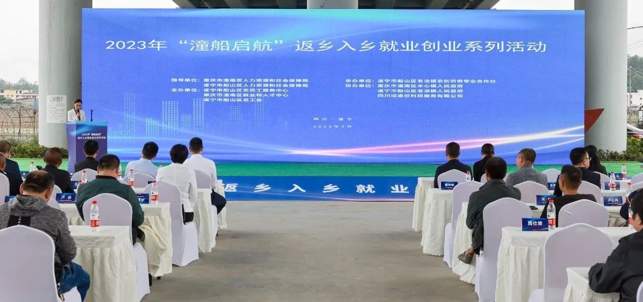 9月26日,由潼南区、船山区人社局指导,潼南区就业和人才服务管理中心、船山区农民工服务中心主办的2023年“潼船启航”返乡入乡就业创业系列活动,在船山区老池镇遂潼涪江蔬菜乐园举办。