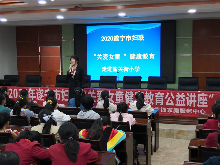 日前,市妇联讲师来到船山区盐关街小学,开展“关爱女童”健康教育公益讲座。