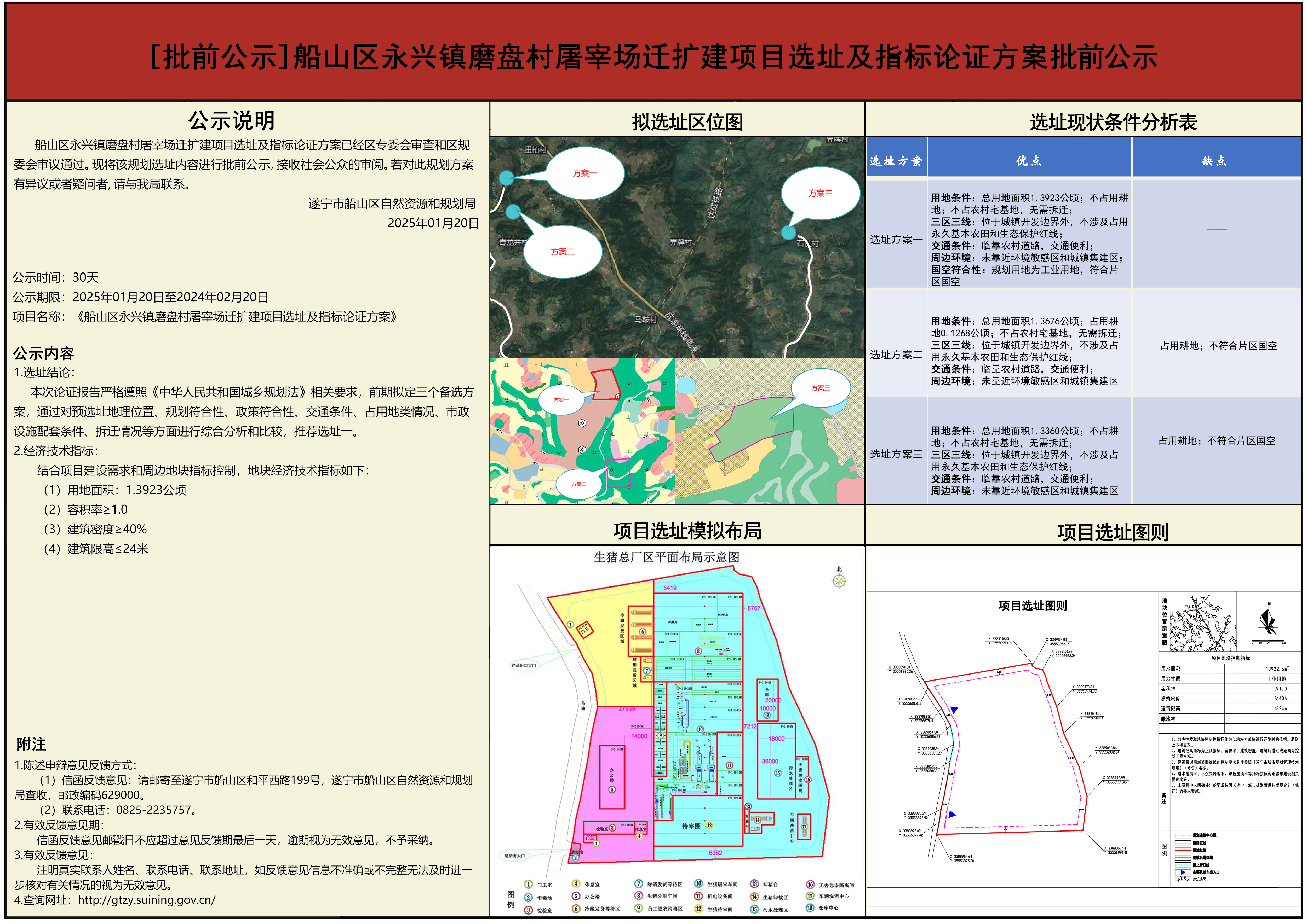 船山区永兴镇磨盘村屠宰场迁扩建项目选址及指标论证方案批前公示