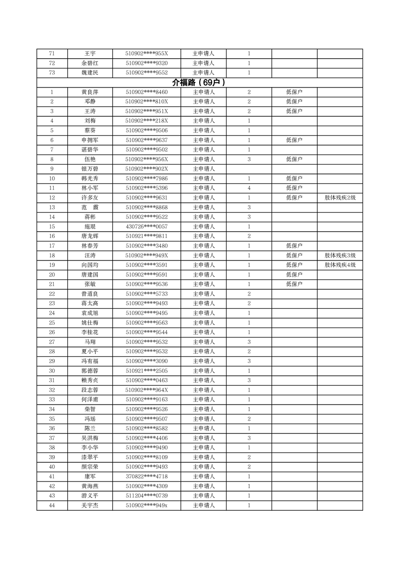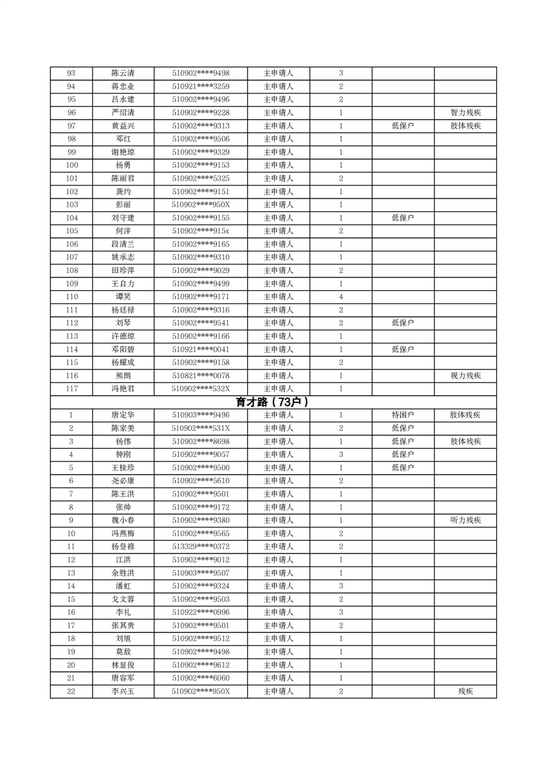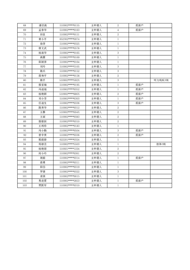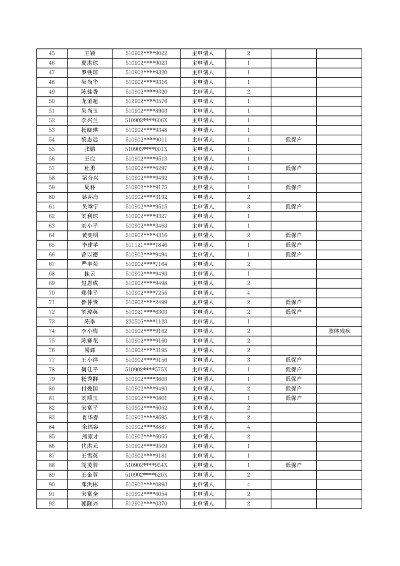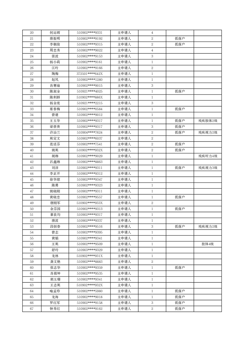 2022年遂宁市市城区公共租赁住房实物配租申请通过人员公示( 412户)