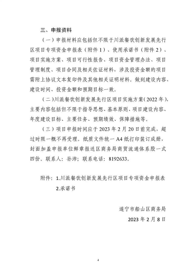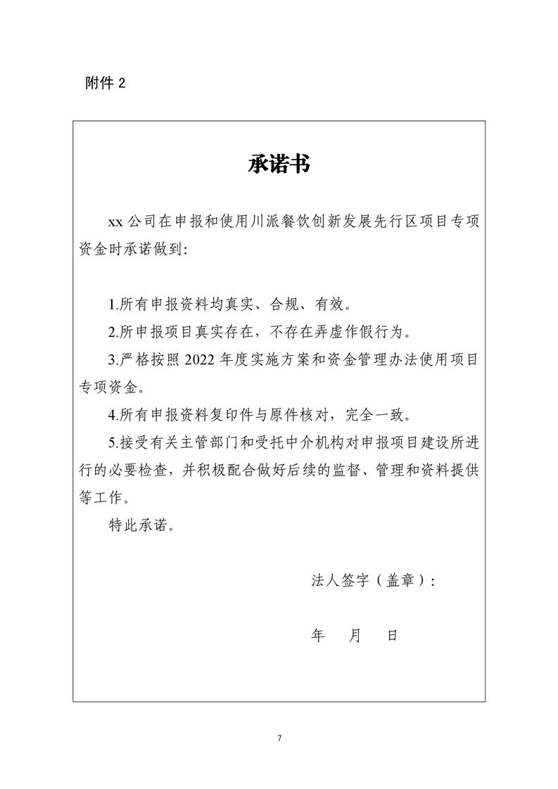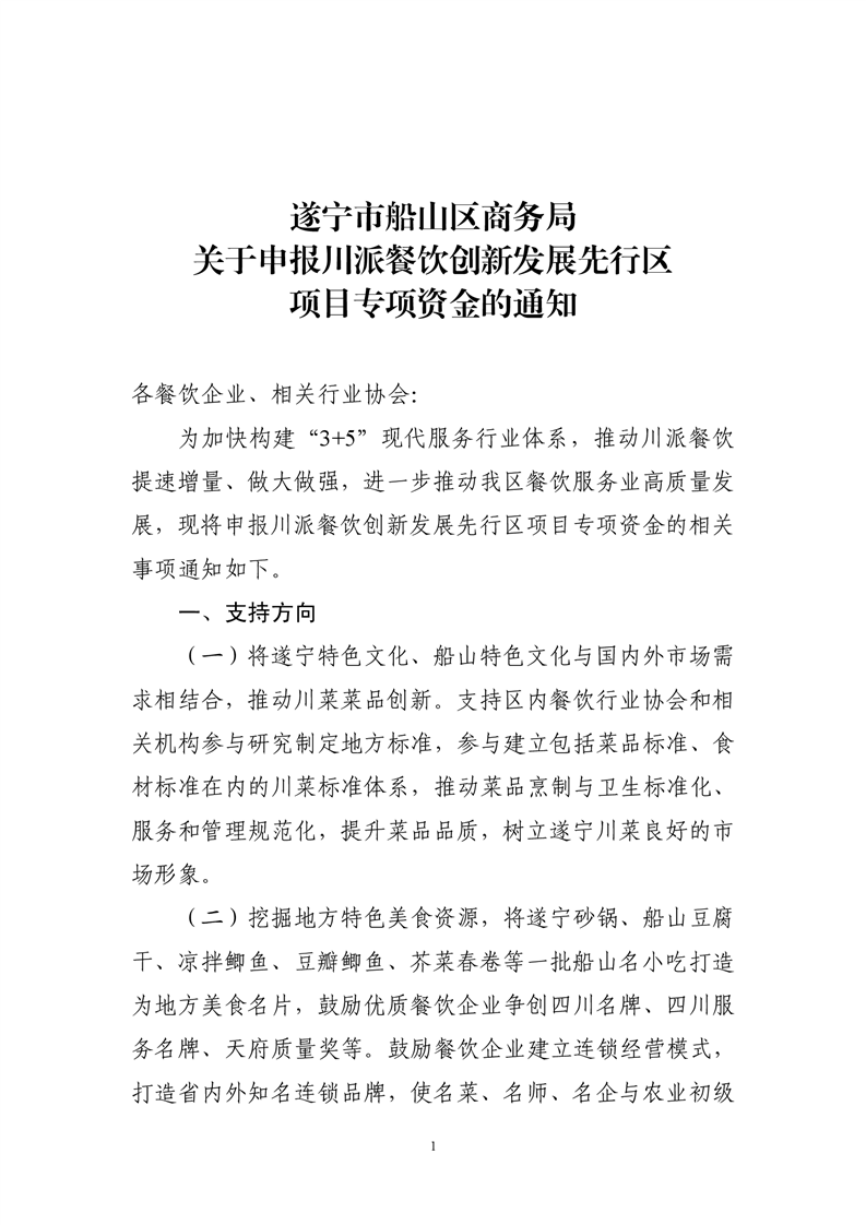 关于申报川派餐饮创新发展先行区项目专项资金的通知