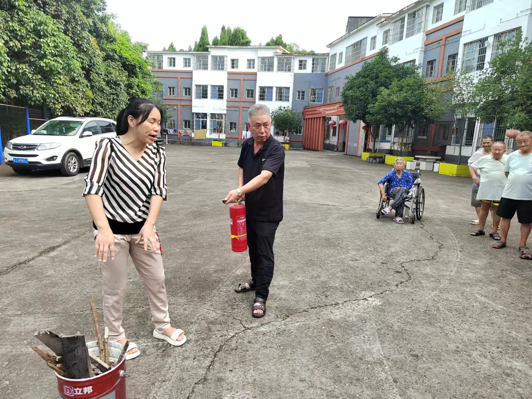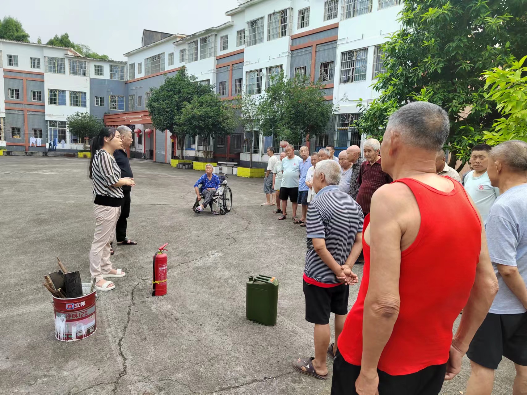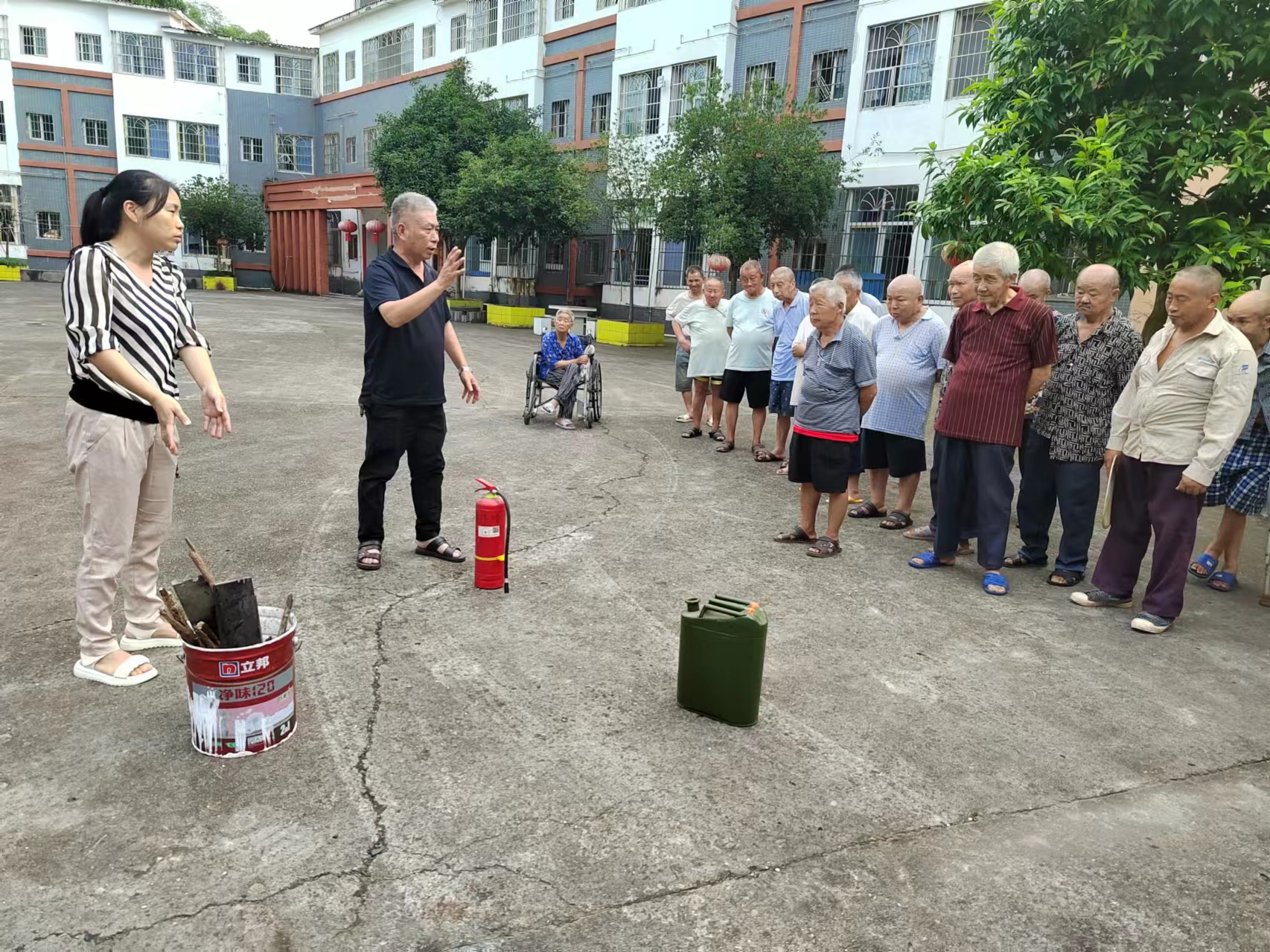 为有效防范化解养老中心消防安全风险,进一步增强养老中心职工及老年人的消防安全意识和应急处置能力,切实保障入住养老中心老人的安全,7月29日上午,龙凤镇组织养老中心开展消防应急演练。对灭火器的规范使用进行详细讲解及示范,掌握使用灭火器扑救初期火灾的方法和技巧,并组织养老中心职工和老人有序进行火情报告、疏散、灭火、逃生等应急疏散演练,此次演练强化了养老中心职工和老年人的消防知识和安全防范意识,确保遇到突发事件时,能够沉着冷静做好紧急处理。