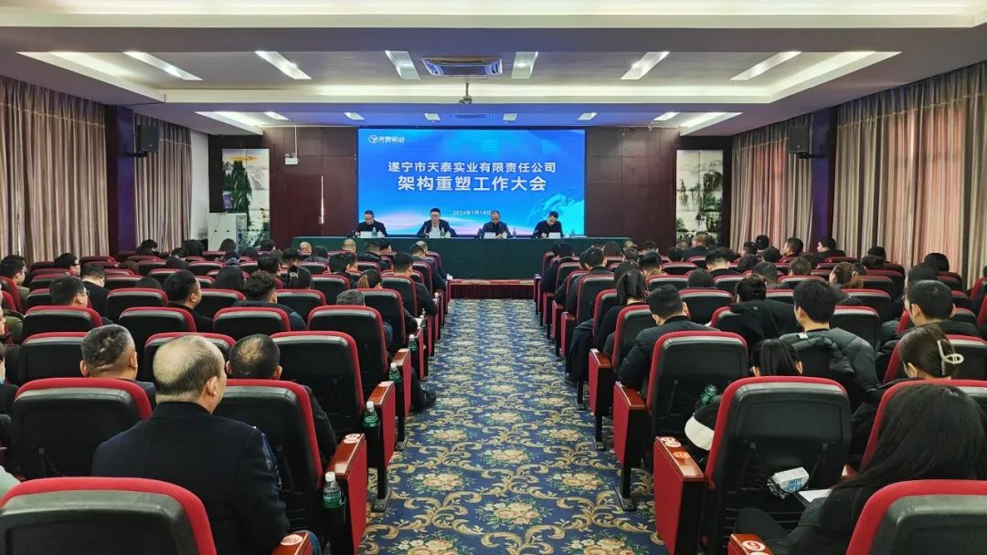 会议宣读了中共遂宁市船山区委办公室、遂宁市船山区人民政府办公室关于印发《遂宁市船山区国有企业架构重塑实施方案》的通知,对天泰实业公司架构重塑下步工作进行了安排部署。